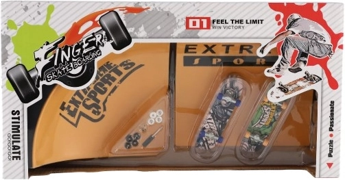 Lépj be az ujjdeszkázás világába komplett készlettel kicsiknek és nagyoknak. Két, 10 cm hosszú ujjgördeszka és a rámpa lehetővé teszi a trükkök és kombinációk gyakorlását, valamint a barátokkal való versengést. A mellékelt szerszámoknak köszönhetően mindent egyszerűen beállíthatsz és összeszerelhetsz a saját ízlésed szerint.