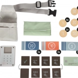 Övtáska pénztárcával, játékpénzzel és kártyaolvasóval lehetővé teszi a gyerekeknek, hogy „fizetéseket” fogadjanak, nyugtát adjanak, és gyakorolják szociális készségeiket.
