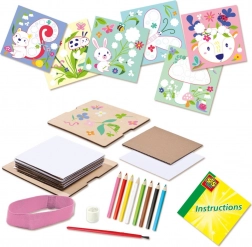 A csomag mindent tartalmaz az azonnali alkotáshoz – a préstől kezdve az előrenyomtatott kártyákon és 8 színes ceruzán át egészen a ragasztóig és ecsetig. A kreatív tevékenység fejleszti a finommotorikát, a képzeletet és a színérzéket, ráadásul nagyszerű módja a közös időtöltésnek a gyerekekkel és a természet szépségeinek felfedezésének.