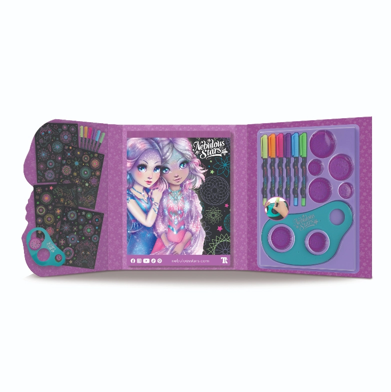 Lépj be a NEBULOUS STARS csillagos világába, és pörgesd fel a fantáziád az egyedi spirálrajzoló szettel. A fekete oldalak gyönyörűen kiemelik a neon színeket, a 7 kerekű sablon pedig megkönnyíti a tökéletesen szabályos vagy játékosan kombinált spirálminták megalkotását.