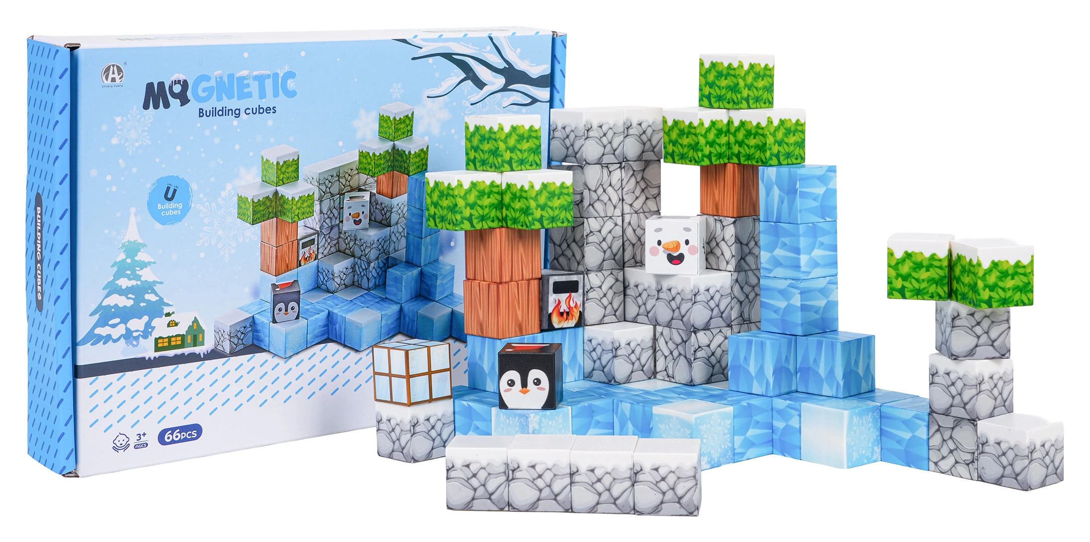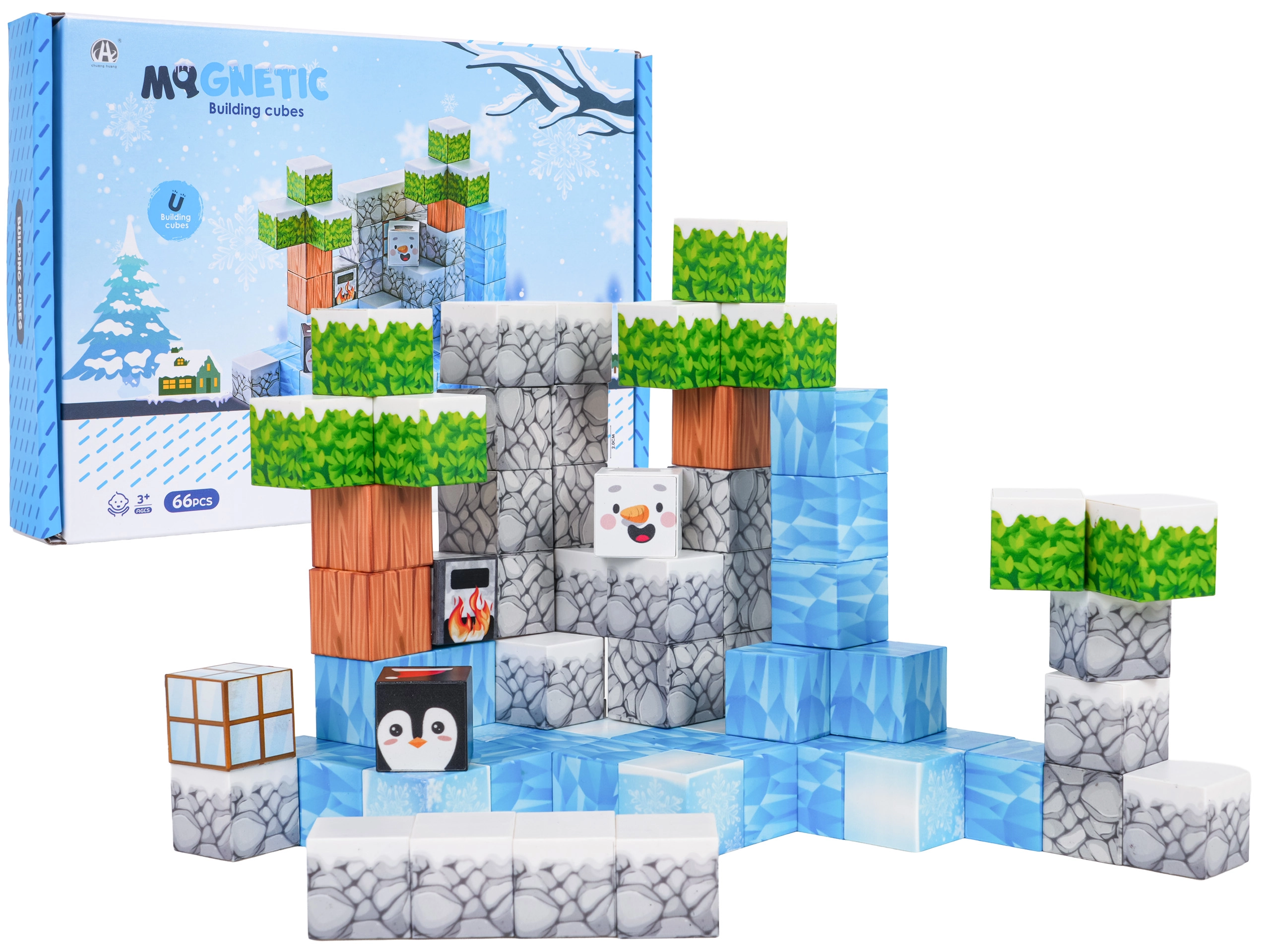 Fedezd fel a kreatív világot ezzel a 3 éves kortól ajánlott építőjátékkal: 66 színes, 3D-s mágneses kocka erős neodímium mágnesekkel a stabil szerkezetekhez. Az élénk színű elemek téli motívumokkal (jég, növények, fa, hóember, pingvin) fejlesztik a logikus gondolkodást, a finommotorikát és a képzelőerőt. Ideális ajándéknak.