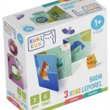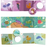 Fedezze fel a legkisebbeknek szánt, állatkákkal teli, három darab kétoldalas harmonika-leporellóból álló vidám készletet. A gyerekek élvezni fogják a kerek zsetonok behelyezését, a kivágott ablakkákat és a különböző környezeteket összekötő történeteket. Extra erős, 2 mm vastag karton, könnyen megfogható a pici kezeknek, támogatja a finommotorikát, a logikát és a szókincset. Csehországban készült, 1–3 éves gyerekeknek ajánlott.