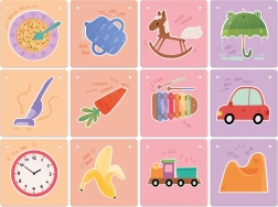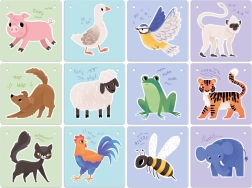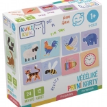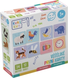 A 12–30 hónapos időszakban a beszédfejlődést leginkább a hangok utánzása befolyásolja. A hangok ismétlése erősíti a beszédszervek motorikáját (ajak, nyelv, lágy szájpad), segít érzékelni a nyelv dallamát és tempóját, és megalapozza a szókincset. A kártyák így kiválóan szolgálnak hídként a hangoktól az első szavakig.