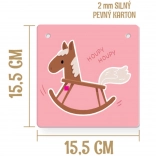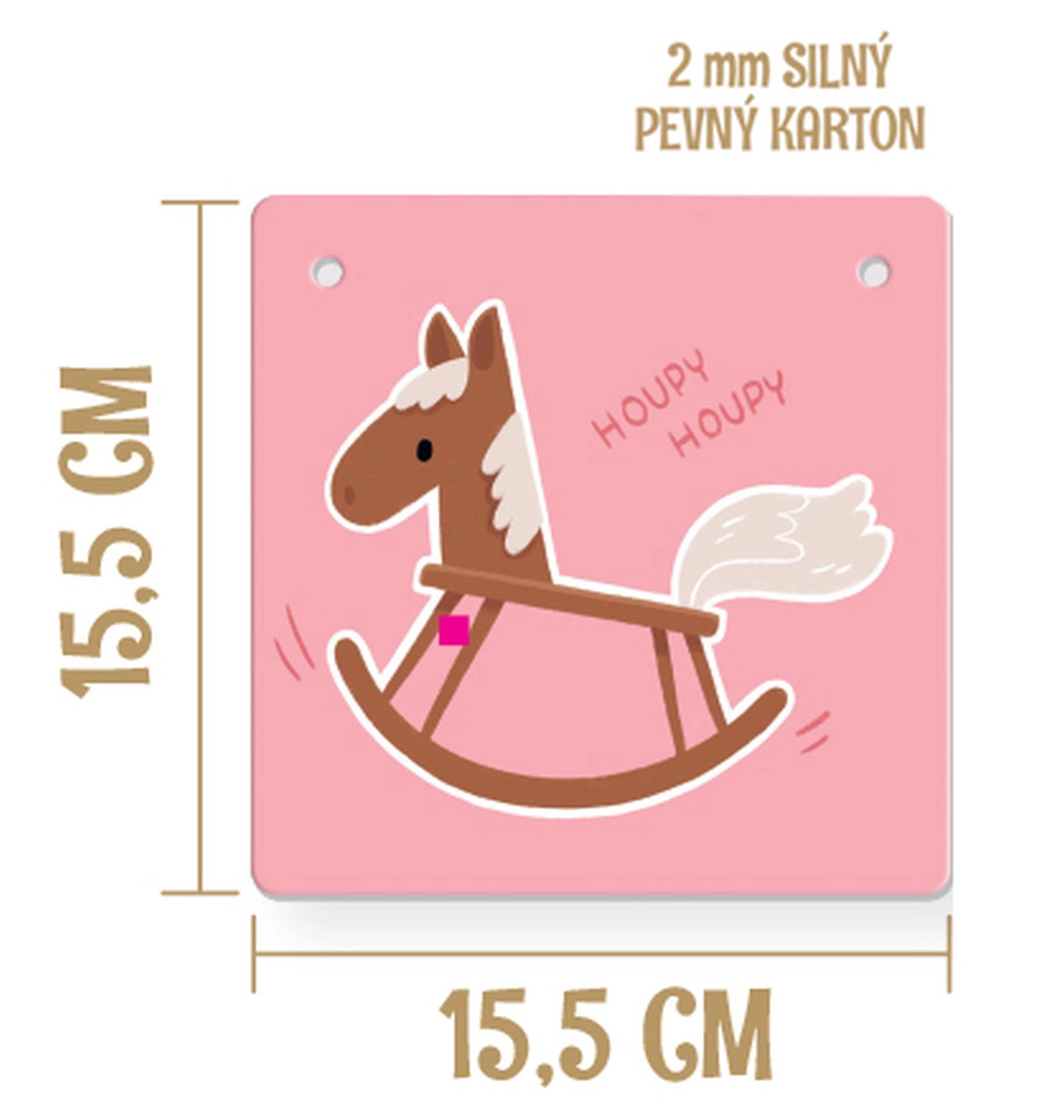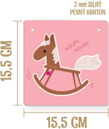 15,5 × 15,5 cm-es méret, 2 mm-es, műanyagmentes FSC kartonból. Ideális a kis gyerekkezekhez, biztonságos és hosszú távon strapabíró.