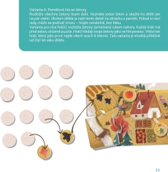 A gyerekek önállóan fedezik fel, válogatják és párosítják a zsetonokat a kész képekhez. Fejlesztik a megfigyelést, a logikus gondolkodást és a szókincset.