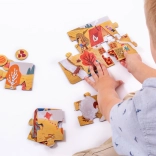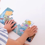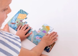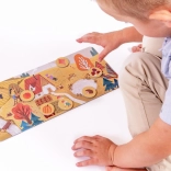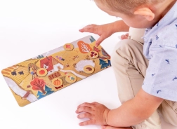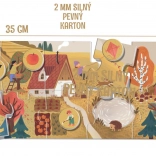 Az extra nagy puzzle-elemek 2 mm-es FSC kartonból jól kézbe illenek, könnyen összeilleszthetők, és műanyag nélkül is bírják a mindennapos játékot.
