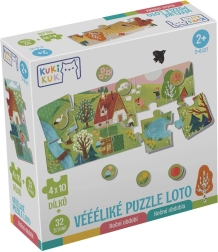 A nagy puzzle lottó évszakok KukiKuk négy gyönyörű jelenetet kínál – tavasz, nyár, ősz és tél. Minden évszak képe 10 nagy elemből áll, ezután 8 kerek zsetont kell hozzárendelni a jellegzetes motívumokkal. A Montessori elveknek köszönhetően a gyerekek önállóan fedeznek fel, válogatnak és kapcsolnak össze elemeket érzékszervi észlelés alapján.
