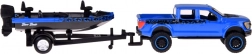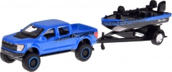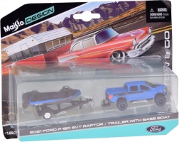 Ez a licencelt Maisto szett elegáns kék–fekete kombinációban minden autó- és miniatűrrajongót megörvendeztet. A FORD F-150 SVT RAPTOR pick-up hűen adja vissza az eredeti arányait és formáit, az egytengelyes utánfutón lévő csónak pedig valósághű megjelenést és játékfunkciókat kölcsönöz az egész összeállításnak.