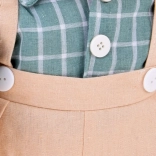 - Vintage megjelenés – zöld kocka, gombos részletek és nadrágtartó.