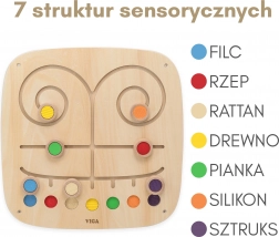 Hét egyedi textúra és élénk színek segítik a gyerekeket a felületek, színek és formák megkülönböztetésében, ezáltal természetes módon erősítik az érzékelést és a koncentrációt.