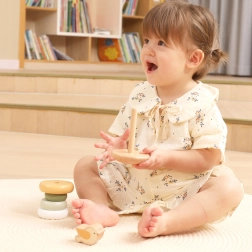 A karikák méret szerinti egymásra rakása erősíti a finommotorikát, a kéz–szem koordinációt és a logikus gondolkodást. A gyerekek játékosan tanulják meg a színek és méretek megkülönböztetését.