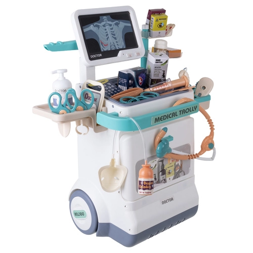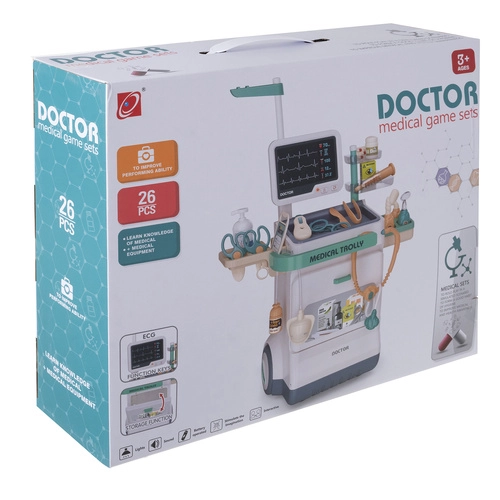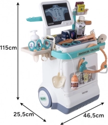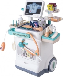 Gyerek orvosi állomás guruló kocsin EKG-val és röntgennel, 26 darab