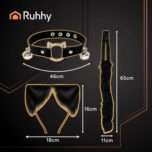 Engedd szabadjára a fantáziád a RUHHY 3 részes szettjével, amely ötvözi a stílust, a játékosságot és a kényelmet. A puha műszőr, elegáns fekete színben, fotókon és videókon is látványos, és kellemes tapintású. A rugalmas dróttal formázható farok könnyen alakítható tetszőleges formára, a két csengettyűvel ellátott choker pedig játékos hangsúlyt ad. A fejpántra rögzített fülek a praktikus rögzítésnek köszönhetően stabilan a fejen maradnak.