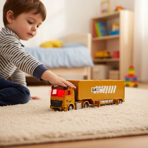 A kampós daru felemeli a terheket, fokozva a valósághű játékélményt. A mozgó részek és a kiegészítők lehetővé teszik az építést, a kirakodást és a forgalom irányítását.