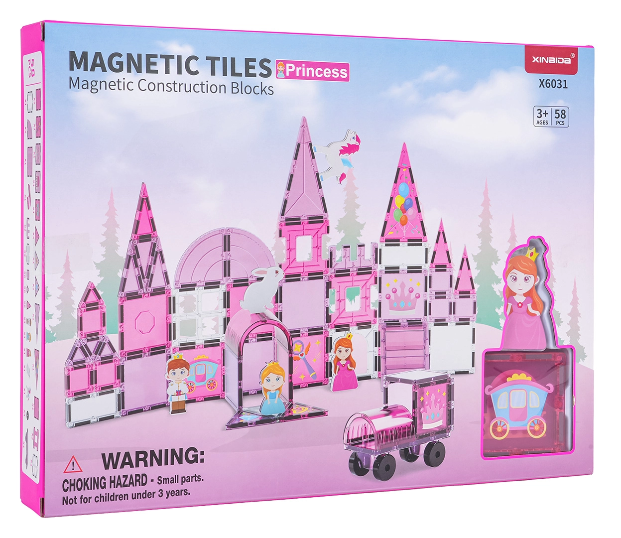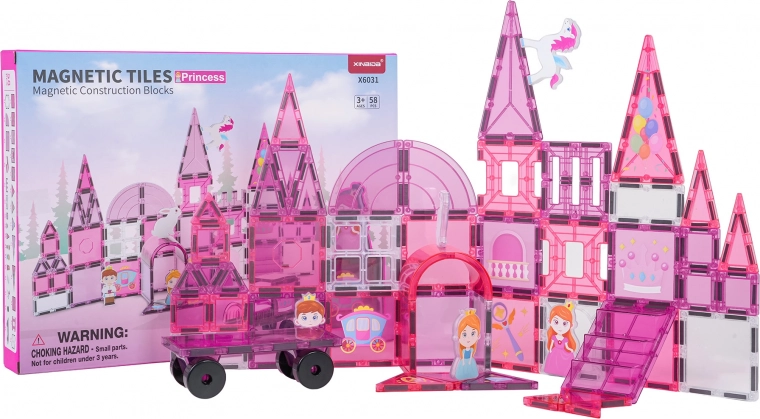 Fedezd fel a varázslatos mágneses építőkészletet 3 éves kortól – 58 darabos szett rózsaszín hercegnői kastély építéséhez. A tartós műanyag elemeket erős neodímium mágnesek kapcsolják össze, így stabil 3D szerkezetek hozhatók létre. A készletben herceg, hercegnők, egyszarvú és nyuszi figurák, valamint kerekes alváz is található járművekhez. Remek játék, amely fejleszti a kreativitást, a türelmet és a koncentrációt.