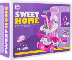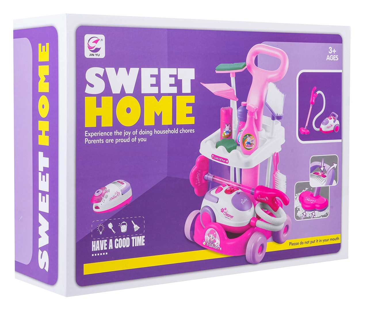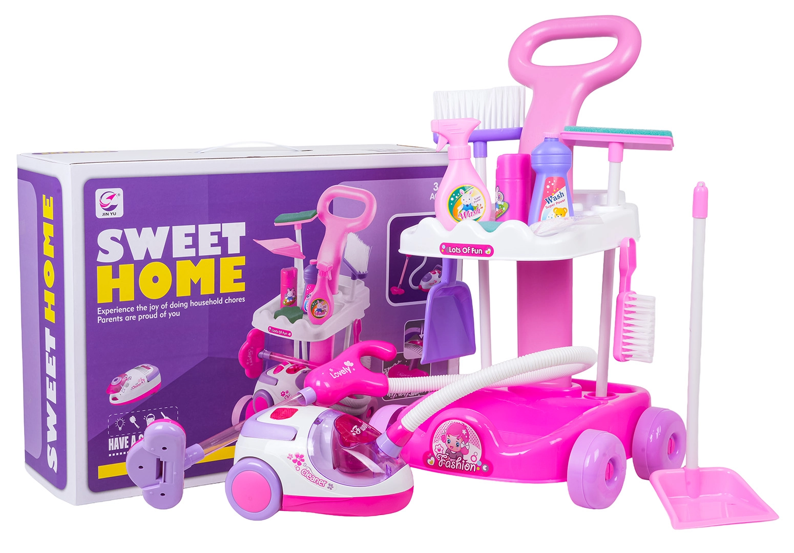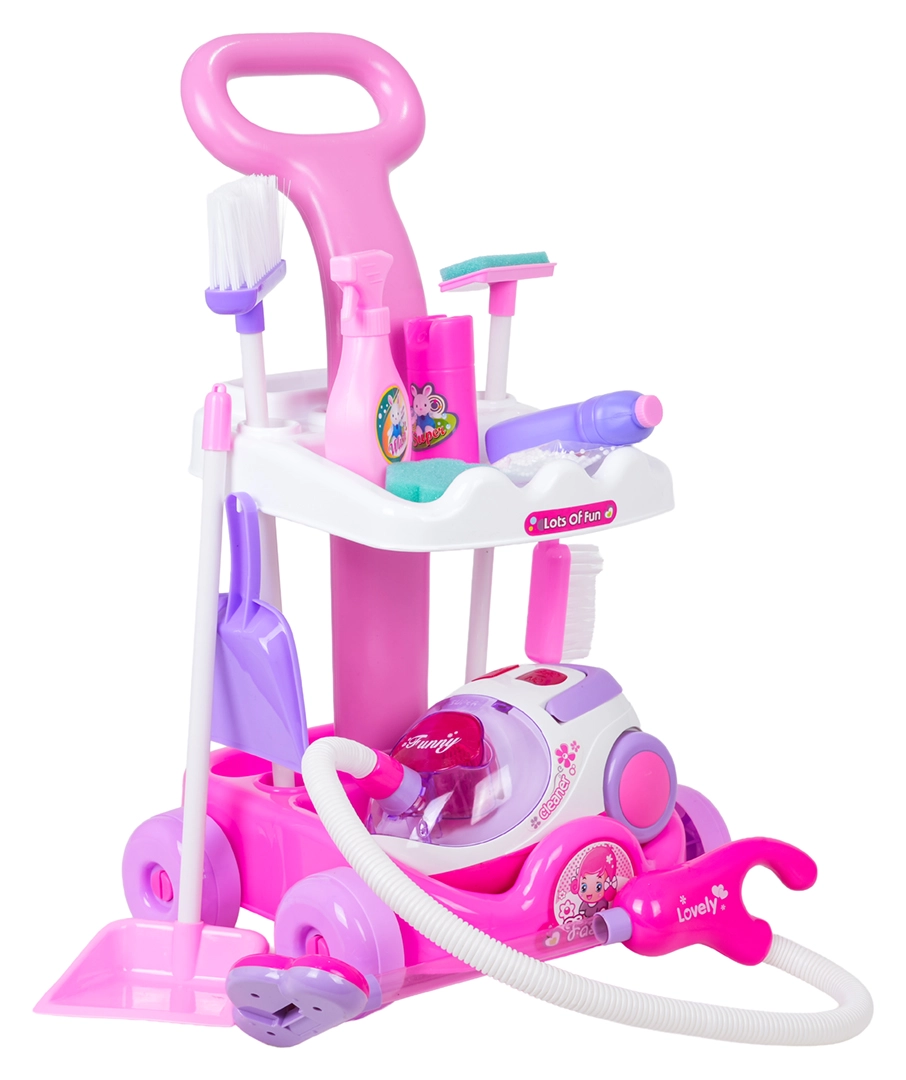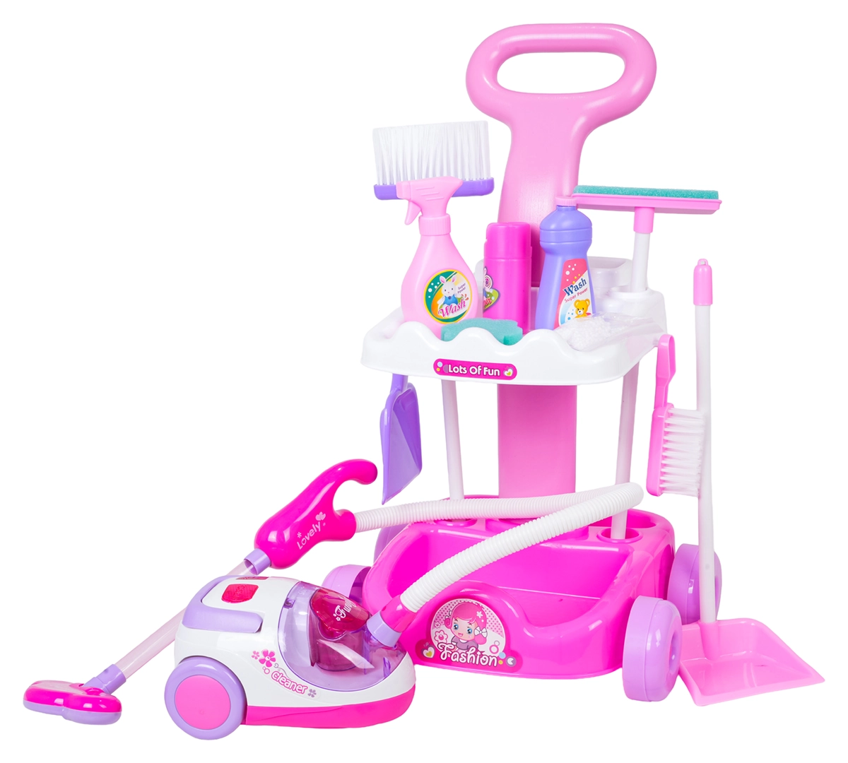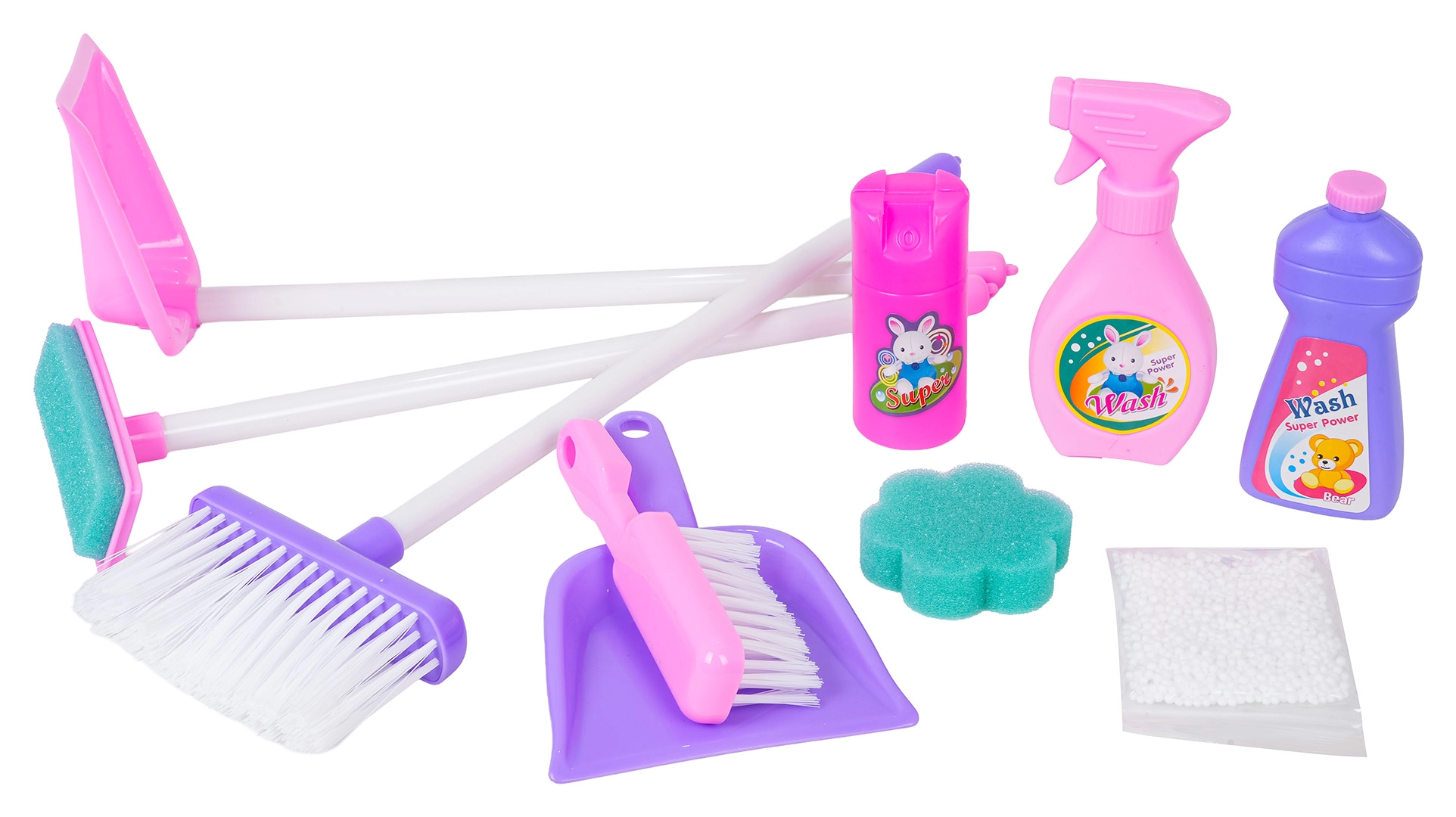 Seprű, lapátok, kiskefe, ablaktörlő, szivacs és tisztítószer-utánzatok. A porszívóhoz való polisztirol golyók sem hiányoznak.