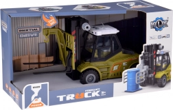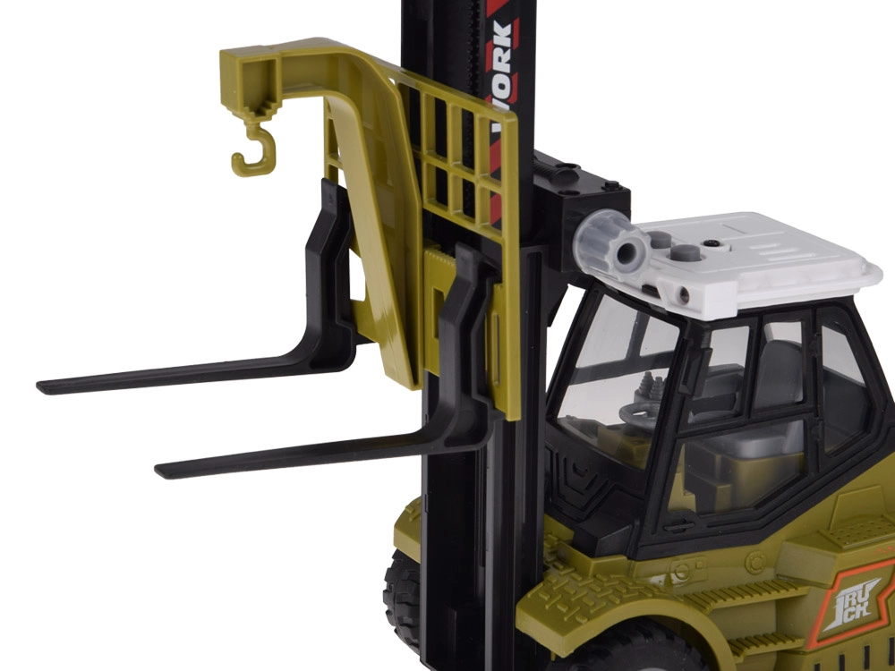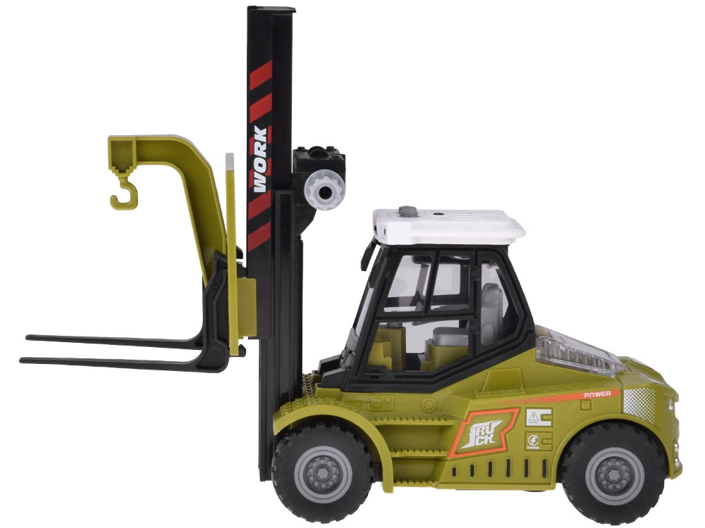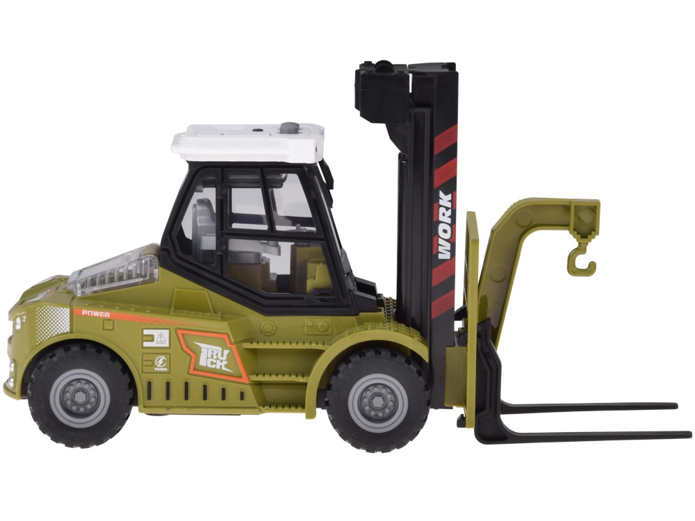 Ez a gyerektargonca a vonzó, professzionális megjelenést átgondolt funkciókkal ötvözi, közelebb hozva az igazi raktártechnika világát. A tetőn található két gombbal 4 valósághű hang (motorindítás, tolatás, teheremelés, duda) indítható, melyeket villogó fehér fény kísér az autentikus játékélményért.