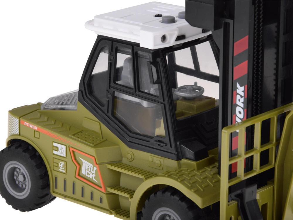 A villák kézzel szélesíthetők és szűkíthetők a „rakomány” típusához igazítva, emelésük a kényelmes forgatógombbal történik. Hasznos a nyitható, átlátszó „csomagtartó” az apróságoknak, valamint a gumis kerekek, amelyek simán gurulnak és nem sértik a padlót. A strapabíró kivitel és a részletgazdag fülke támogatja a kreatív, biztonságos és hosszan tartó játékot.