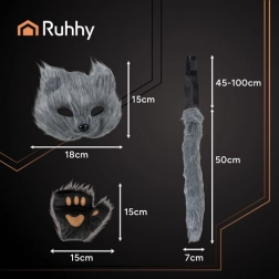 Fejezd ki magad a RUHHY 4 az 1-ben stílusos szettel. A gumis maszkkal, a hosszú, állítható, rugalmas dróttal ellátott farokkal és a bájos mancsokkal/kesztyűkkel univerzális jelmezt alkot cosplayhez, rendezvényekhez, bulikhoz, videókhoz és tematikus fotózásokhoz. A puha és kellemes tapintású műszőr kivitel kényelmes viseletet és élethű hatást nyújt.