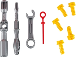 A csomag része egy gazdag alkatrész- és szerszámkészlet: 31 csavar és facsavar, kétrészes kulcs és csavarhúzó, villás/dugókulcs, kerekek felnikkel, kormánykerék, motorháztető motorral és matricák a személyre szabáshoz. A gyerekek így fejlesztik a finommotorikát, a türelmet és a logikus gondolkodást – miközben remekül szórakoznak.