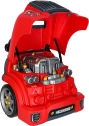 A gyerekek felfedezhetik a „motortér” belsejét, csavarozhatnak és újra összerakhatják az egyes részeket – játékos módon megértik, hogyan működik a jármű.