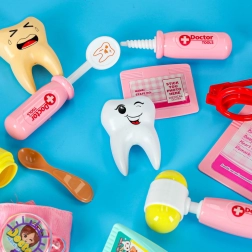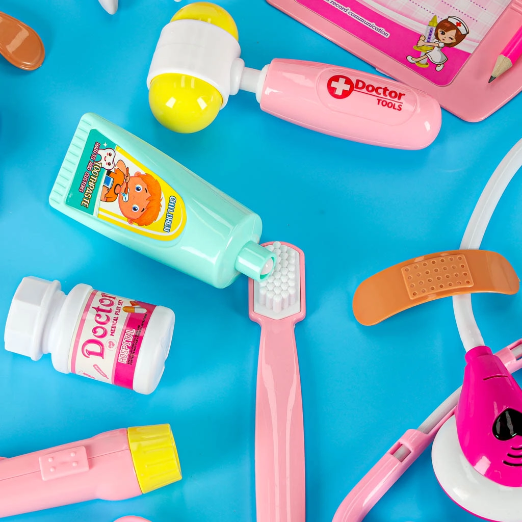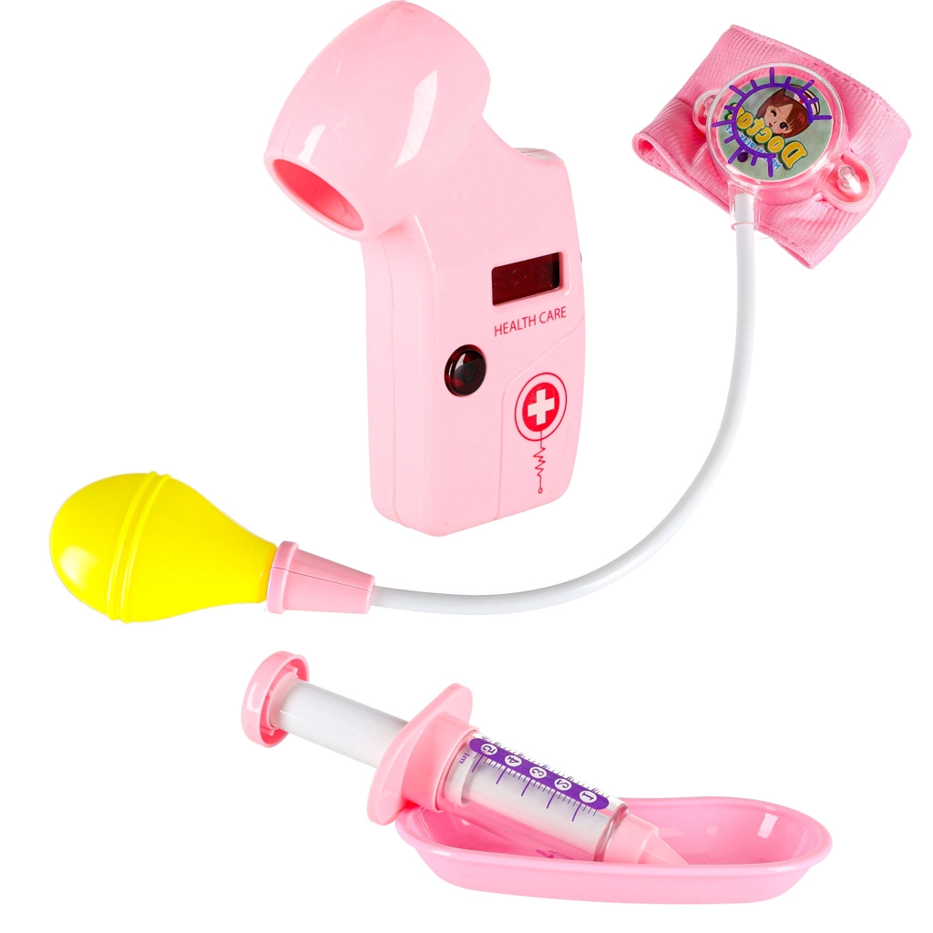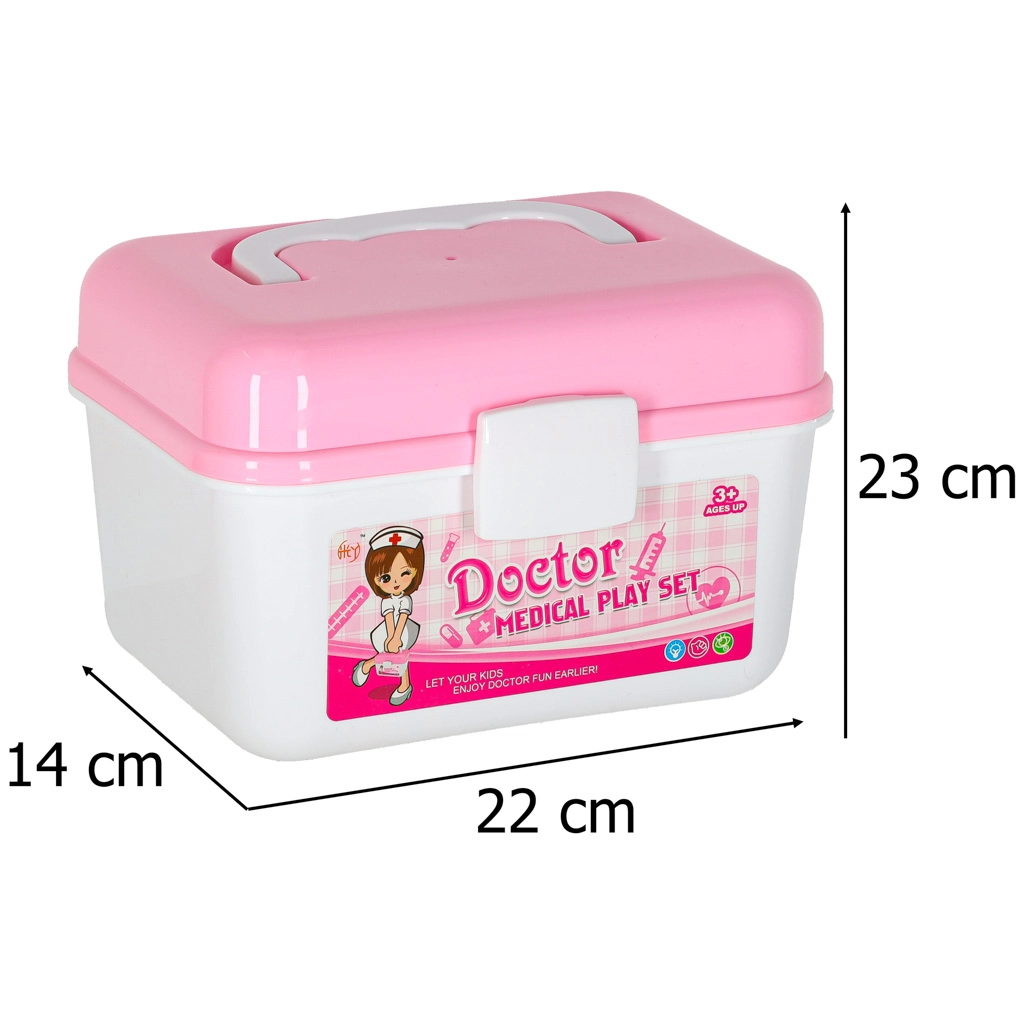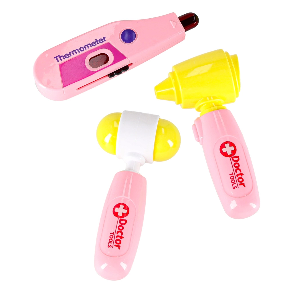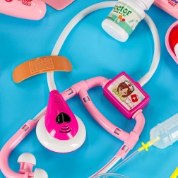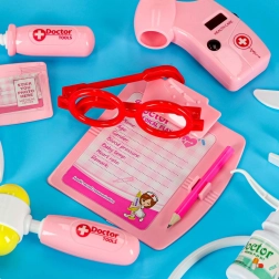 Aranyos, fehér–rózsaszín orvosi táska jelmezzel és gazdag, 35 darabos készlettel, amely minden gyermeket kis doktorrá vagy nővérkévé változtat. Tartalmaz interaktív eszközöket fénnyel és hanggal (sztetoszkóp szívveréssel, hőmérő, otoszkóp, pulzoximéter, zseblámpa), fogászati eszközöket és infúziós állványt a valósághű játékhoz. Szuper játék, amely fejleszti a fantáziát, csökkenti az orvostól való félelmet, és segít a egészségmegőrzés és higiénia elsajátításában.