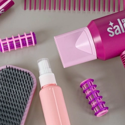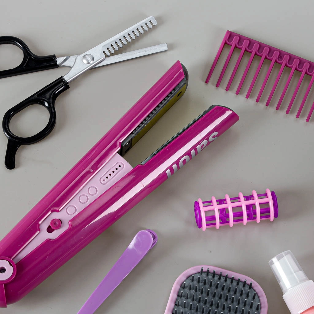 Adjunk a gyerekeknek élethű, mégis kockázatmentes szórakozást. Az interaktív hajszárító valósághű hangokat ad és állítható a „szárítás intenzitása”, míg a hajvasaló gombnyomásra világít és hangot ad, de nem melegszik fel – a játék teljesen biztonságos. A rózsaszín–lila készlet örömet okoz a kis stylistoknak, és a sok kiegészítőnek köszönhetően a gyerekek gyakorolhatják a finommotorikát és a szociális készségeket.