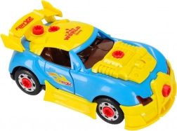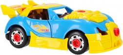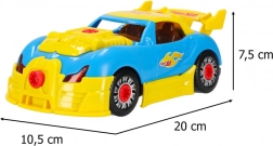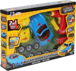 A modell 2 az 1-ben – a gyerekek választhatnak a kabrió és a versenyspeciál között. A műanyag alkatrészek könnyűek, tartósak és a nagy műanyag csavarokkal egyszerűen szerelhetők. A készlet fejleszti a kreativitást, a műszaki gondolkodást és a kéz–szem koordinációt.