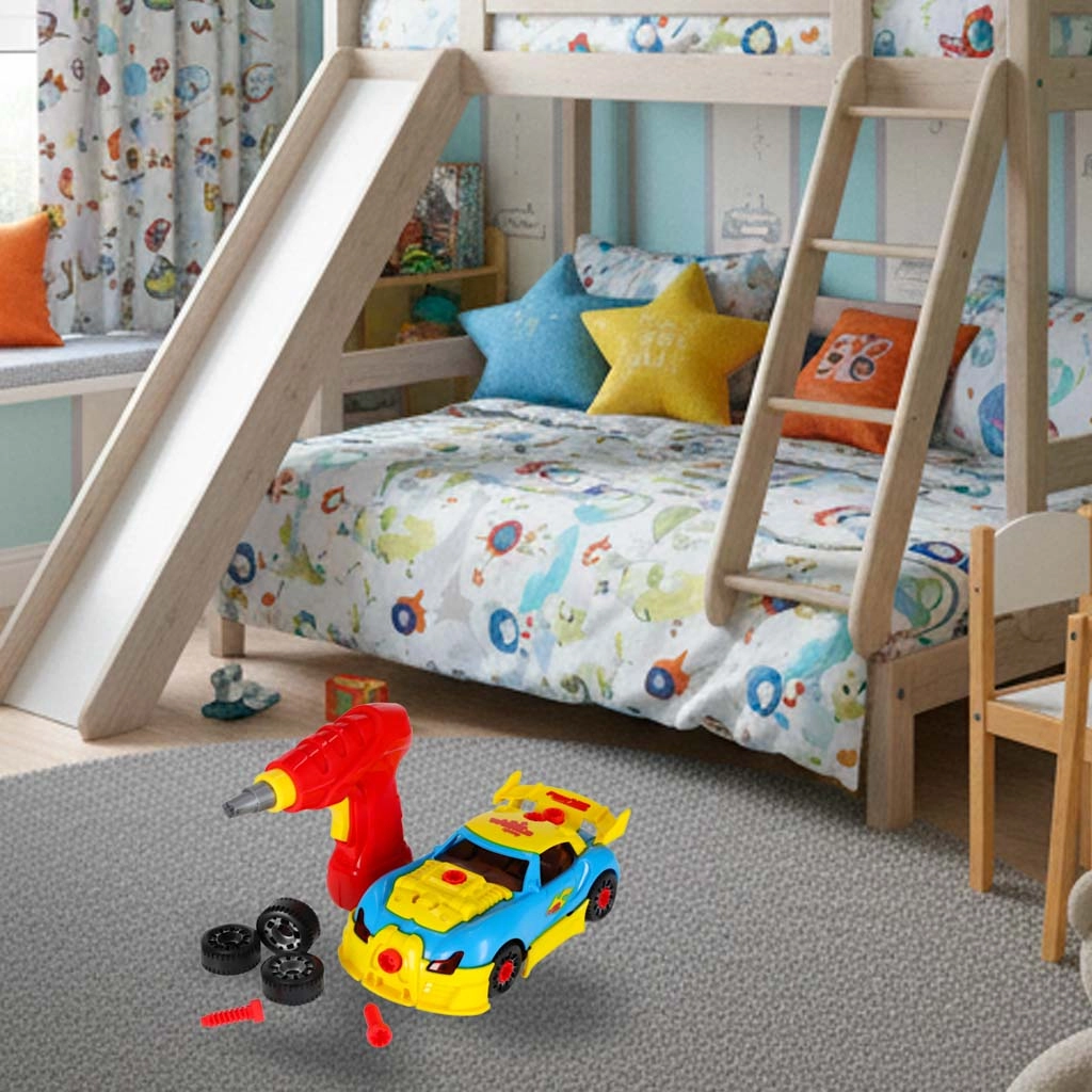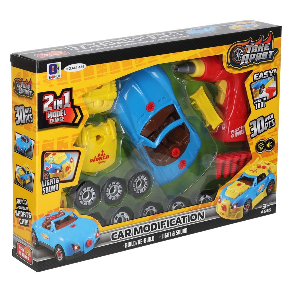 A színes sportautó építőkészlete hosszú órákra nyújt szórakozást a gyerekeknek. A mellékelt akkumulátoros csavarhúzóval a kis kezek szétszedhetik és újra összerakhatják az autót, cserélhetik a karosszériapaneleket és a kerekeket, miközben felfedezik, hogyan működnek a dolgok. Az összerakott autó világító fényekkel és motorhangokkal kelti életre a játékot, fokozva a valósághű élményt.