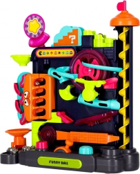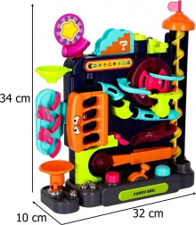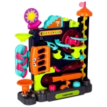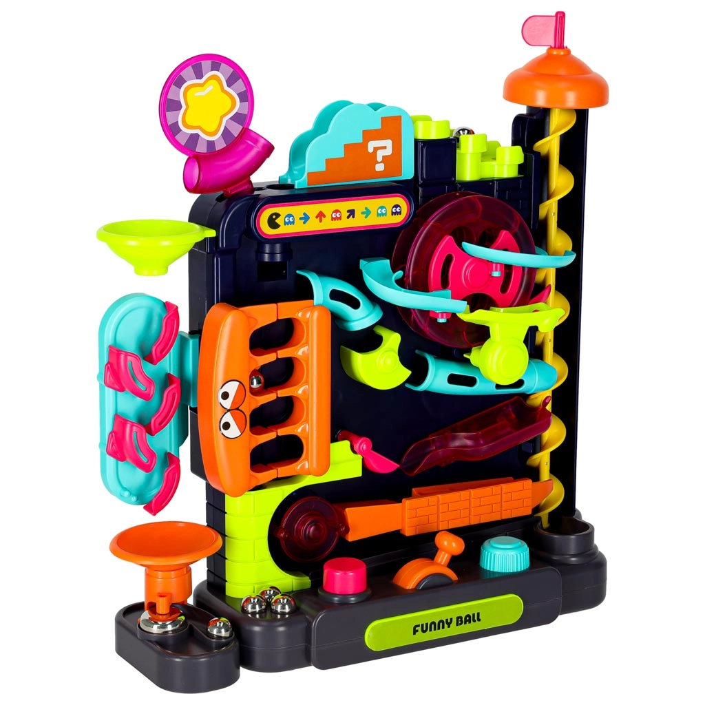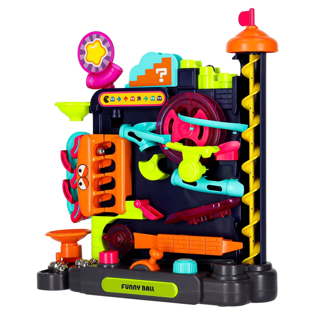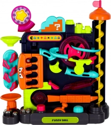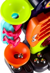 A masszív műanyag felépítésnek, a stabil alapnak és az áttekinthető pályarendszernek köszönhetően a játék a kisebbek számára is könnyen használható. A készlet része 6 fémgolyó, amelyeket egyszerű elindítani és újra meg újra visszatenni a startra. A számos útvonal és mozgó alkatrész támogatja a kreativitást, a logikus gondolkodást és a koncentrációt.