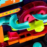 Ez a színes golyópálya izgalmas utat kínál 3 éves kortól, tele rámpákkal, spirálokkal és interaktív elemekkel. Irányítsa a pályát karokkal és forgó vezérlőkkel, figyelje, ahogy a golyók átjutnak az akadályokon, és közben fejlessze a koordinációt és a türelmet. Ideális otthoni szórakozáshoz és egyszerű fizikai kísérletekhez a gravitációval.
