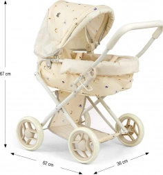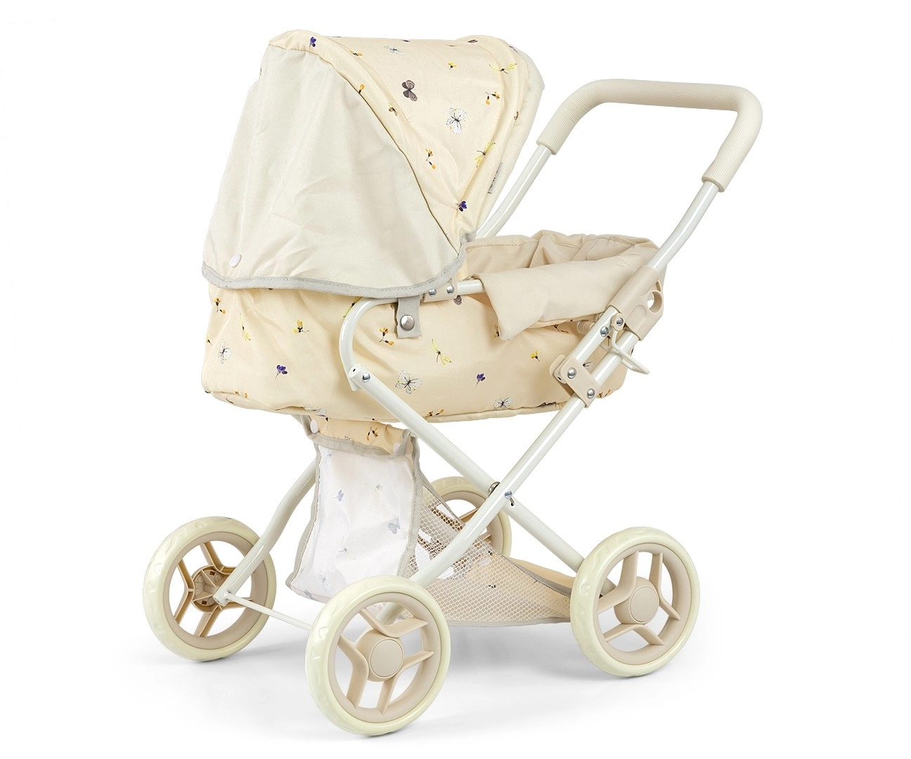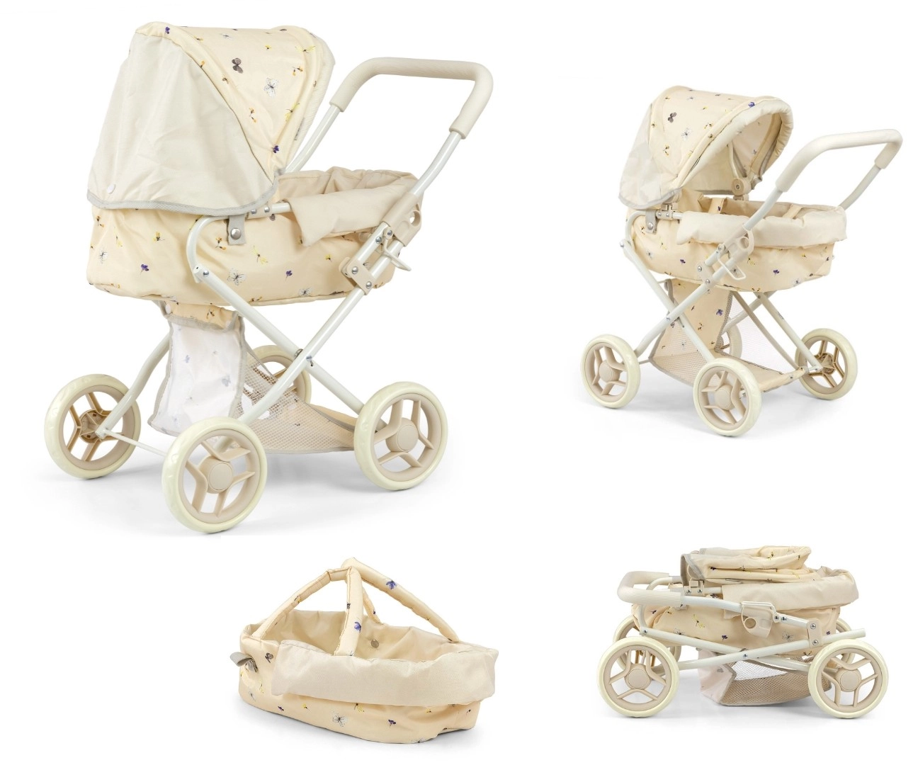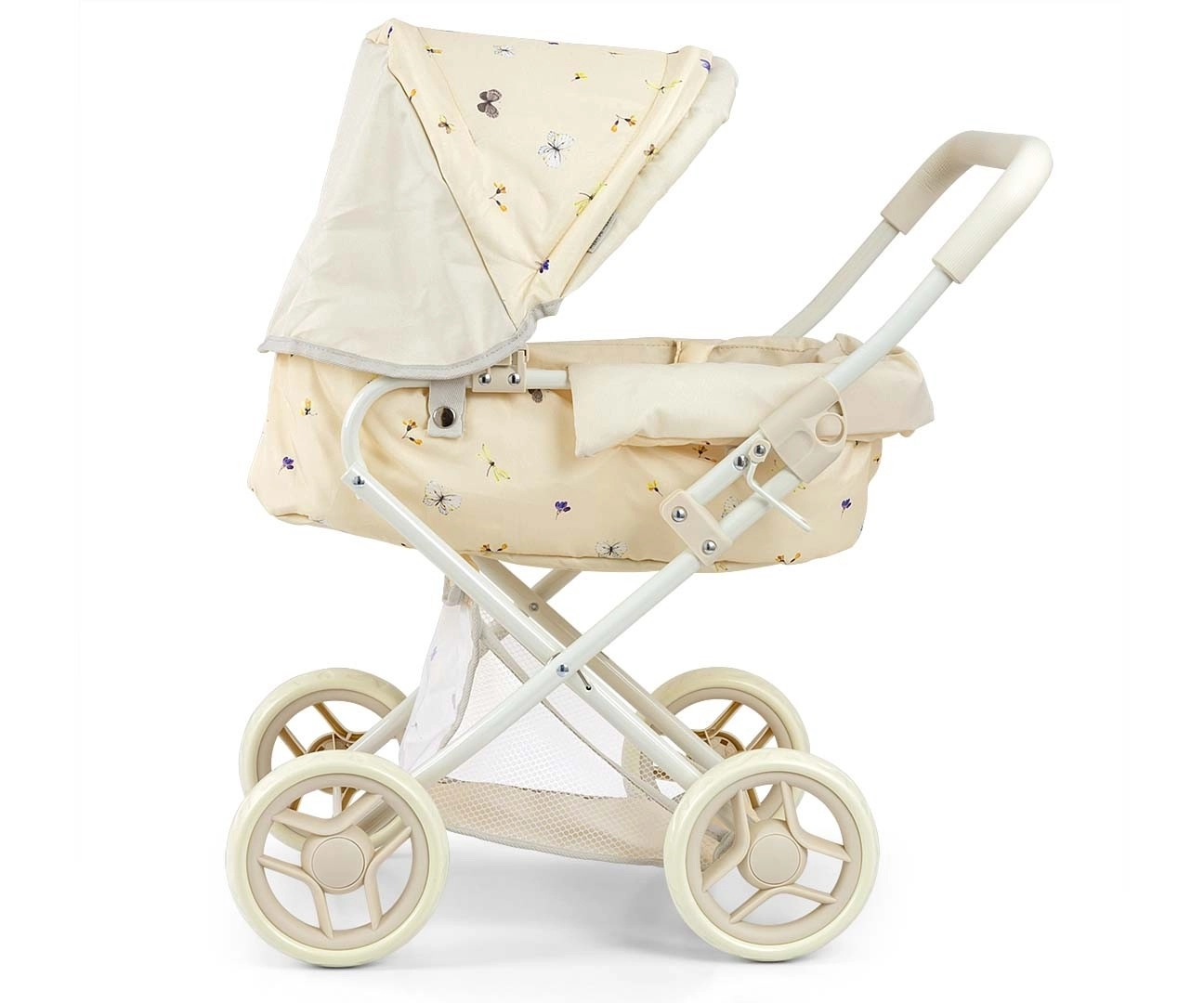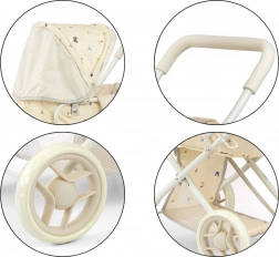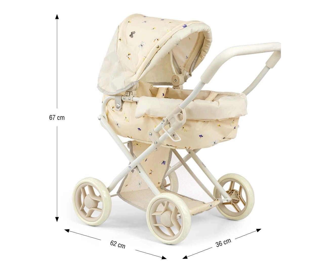 Az Alice Nature babakocsi úgy készült, hogy a lehető legjobban hasonlítson egy valódi gyerekbabakocsira. A puha párnázású, kivehető mély kosár kb. 40 cm-es babák hordozójaként is használható. Az összecsukható és levehető kupola „séták” közben otthon és a szabadban is védi a babát.