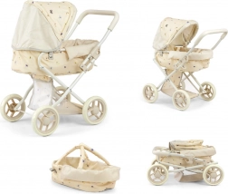 Stílusos babakocsi babák számára, a MILLY MALLY Alice Nature természetes tónusokban, élethű megjelenéssel és minőségi kivitelezéssel. Mély, kivehető mózeskosarat kínál párnával és takaróval, laposra összecsukható vázzal, fém kerettel és praktikus kosárral a kiegészítőknek. Könnyen tisztán tartható a mosható huzatnak köszönhetően, és kényelmesen irányítható a habos fogantyú és a csendes kerekek révén.