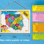 Mindegyik mágneses elem egy-egy konkrét régiót és annak jellegzetes nevezetességeit és szimbólumait mutatja be, így a gyerekek könnyebben megjegyzik az országra vonatkozó fontos információkat. A mágneses alapnak köszönhetően az elemeket egyszerű felhelyezni, és stabilan a helyükön maradnak – ideális otthoni tanuláshoz és szórakozáshoz.
