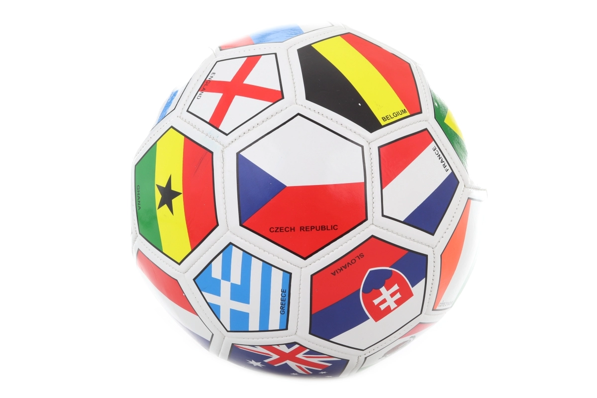 Stílusos focilabda nemzeti zászlómotívumokkal szórakoztató edzésekhez és szabadidős játékhoz. Laza talajú felületeken (fű, föld) való használatra készült, leeresztve kerül szállításra, felfújás után az átmérője körülbelül 20 cm (a felfújás mértékétől függően). Ideális 3 éves kortól, 5-ös méret.