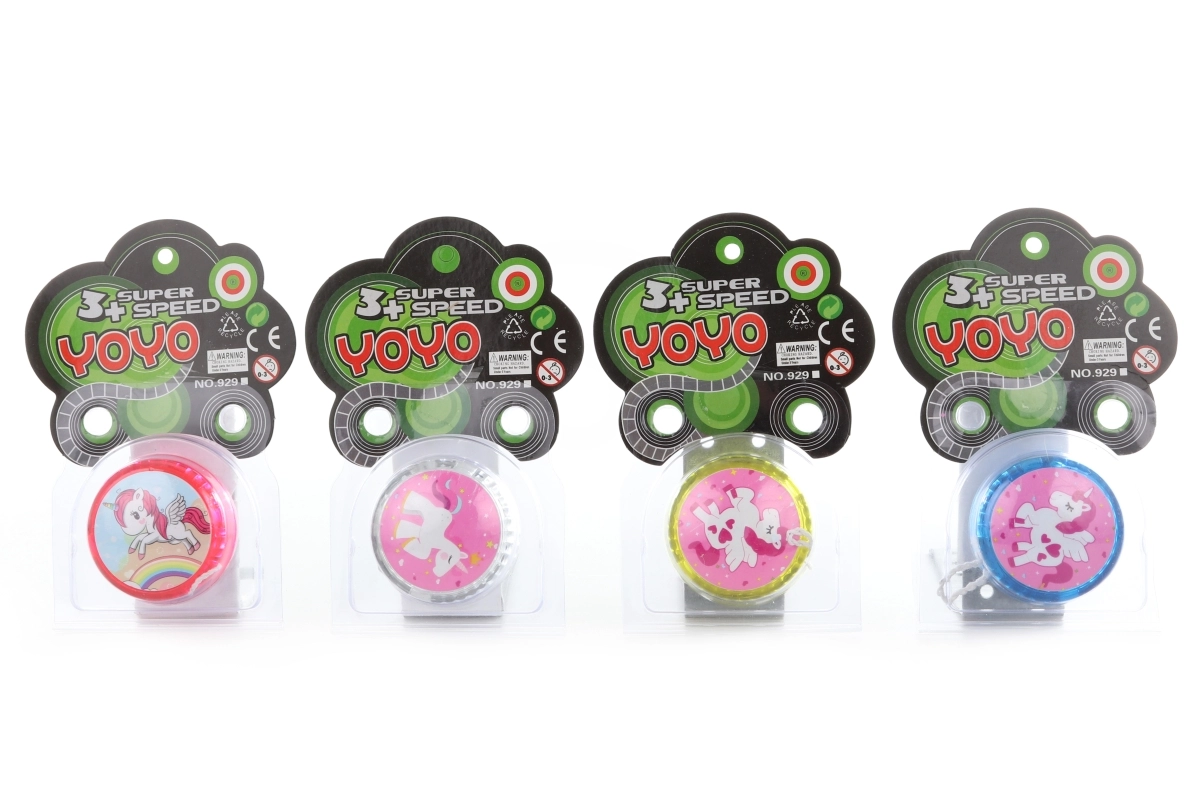 Szórakoztató műanyag jojó unikornis motívummal, amely pörgés közben világít, és felkelti a gyerekek és felnőttek figyelmét. Ideális ügyesség és finommotorika fejlesztésére, 2 gombelemmel működik. Kompakt méret kb. 5,5 × 5,5 × 3 cm, ajánlott 3 éves kortól.