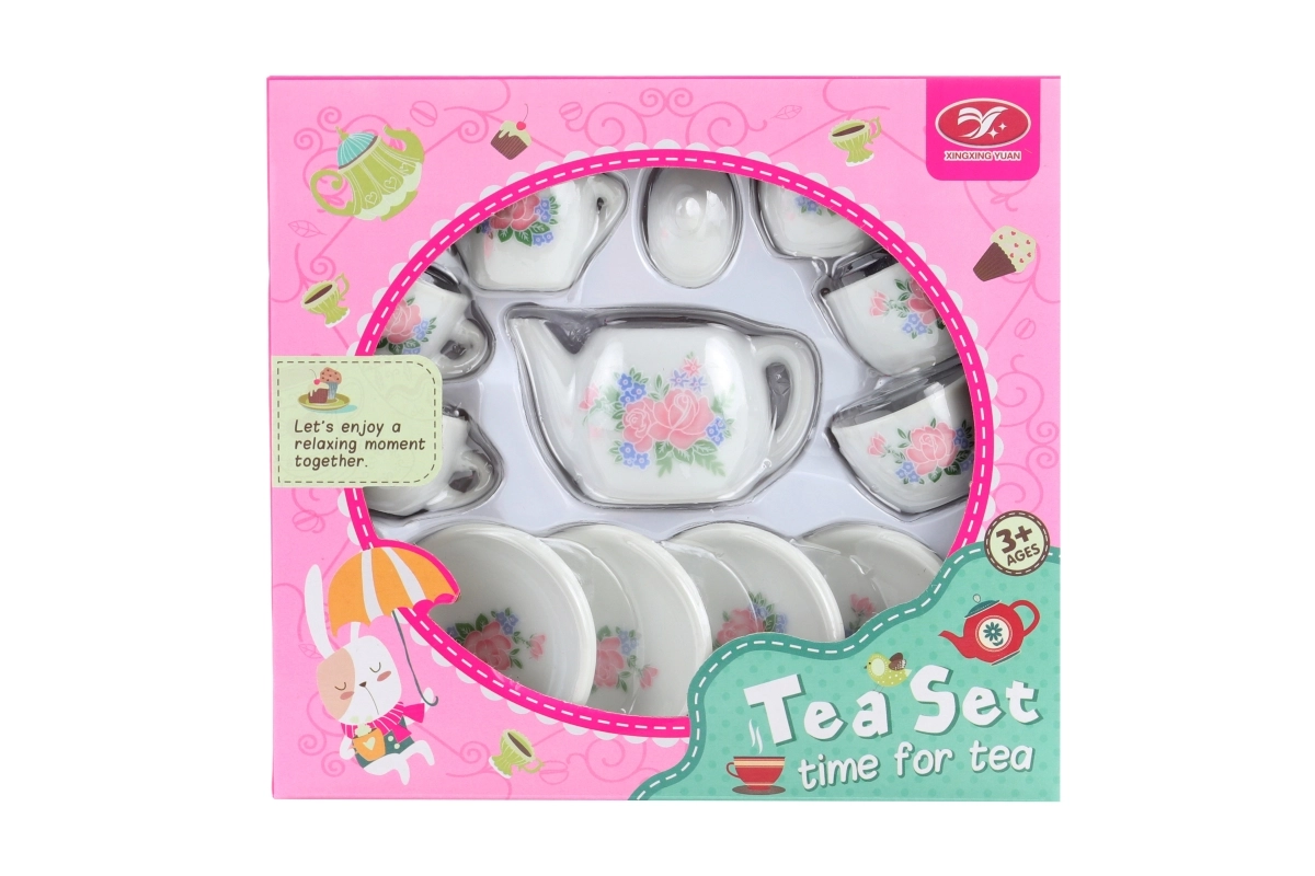 A bájos porcelán teázókészlet rózsákkal minden kis házigazdának örömet szerez. A készlet tartalmaz 4 csészét csészealjjal, egy kannát és egy cukortartót, ideális teázós szerepjátékhoz. A kompakt csomagolás és a minőségi porcelán kivitel biztosítja az elegáns megjelenést és a hosszú élettartamot. 3 éves kortól ajánlott.