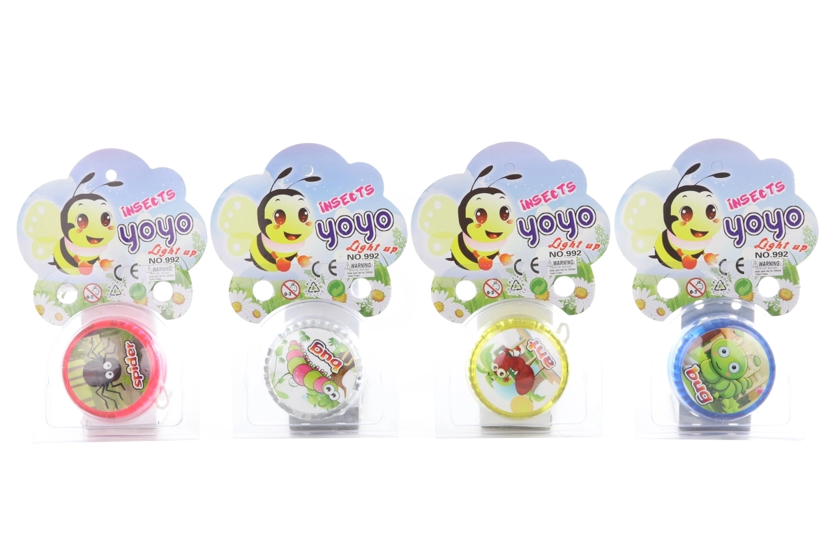 Szórakoztató műanyag jojó rovaros képekkel, amely pörgetés közben világít. Ideális 3 éves kortól, látványos fényhatásokat kínál, könnyen kezelhető és strapabíró kivitelű a mindennapos játékhoz.