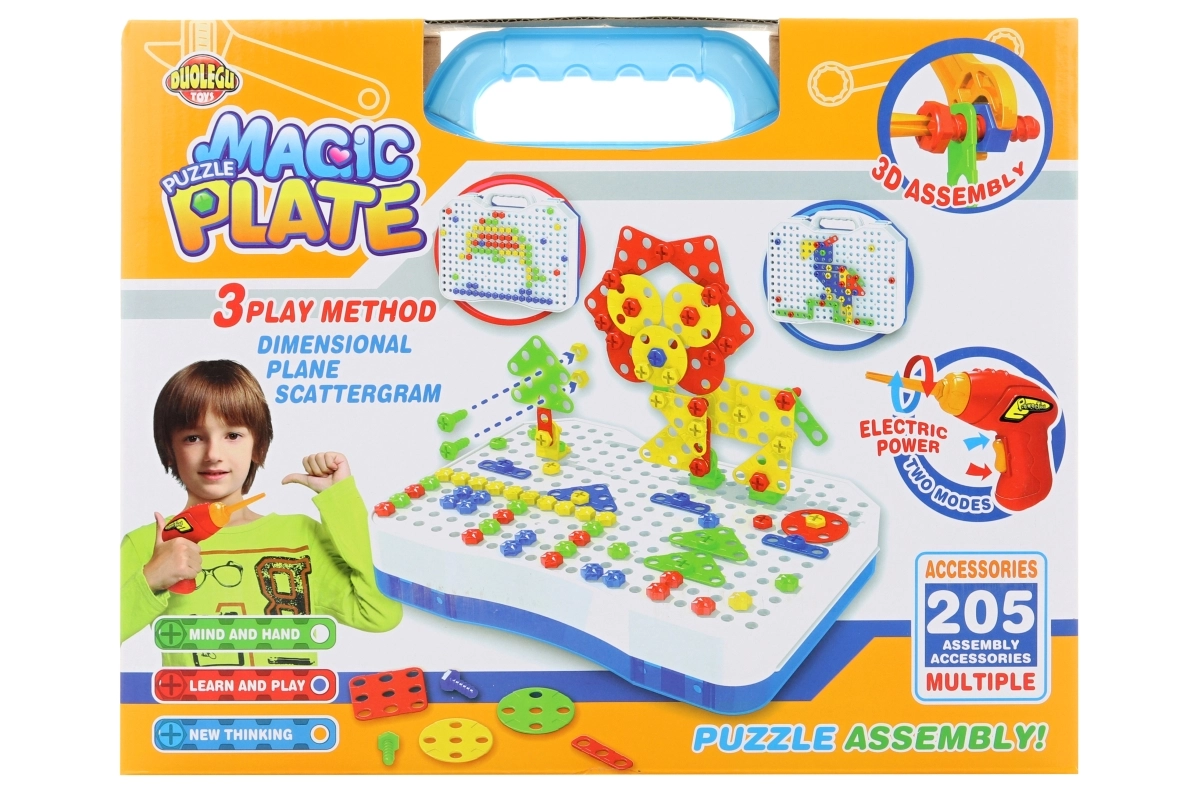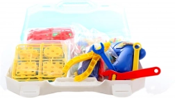 Szórakoztató és kreatív csavarozós építőkészlet működő gyermek fúróval praktikus kofferben, amely 3 éves kortól örömet szerez a kis építőknek. A csomag 205 darabot, szerszámokat és útmutatót tartalmaz, így a gyerekek fejleszthetik finommotorikájukat, logikus gondolkodásukat és kreativitásukat, miközben végtelen számú modellt építenek.