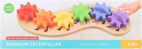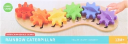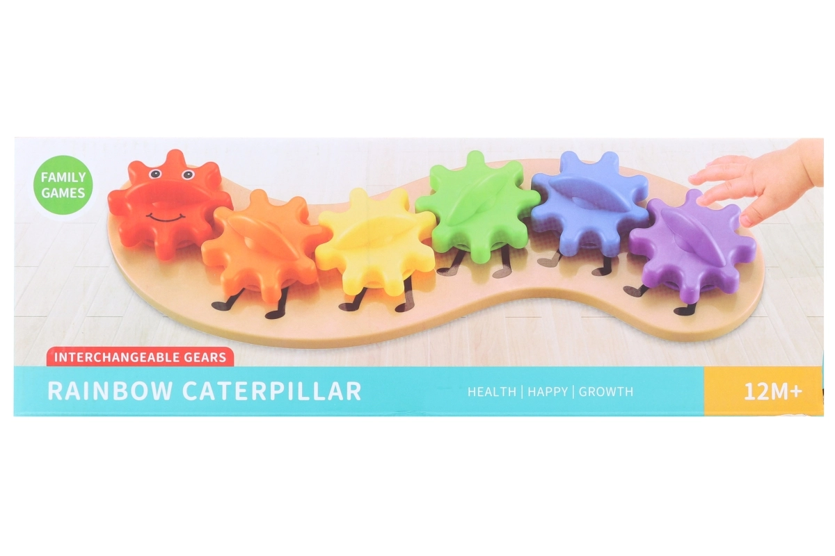 A színes, műanyag, fogaskerekekből álló hernyó nagyszerű oktatójáték a kis felfedezőknek. A gyerekek ennek köszönhetően megértik a mechanika alapjait, elbűvöli őket a fogaskerekek mozgása és a szivárványszínek. Ideális a finommotorika, a logika és a kíváncsiság fejlesztésére már 1 éves kortól.