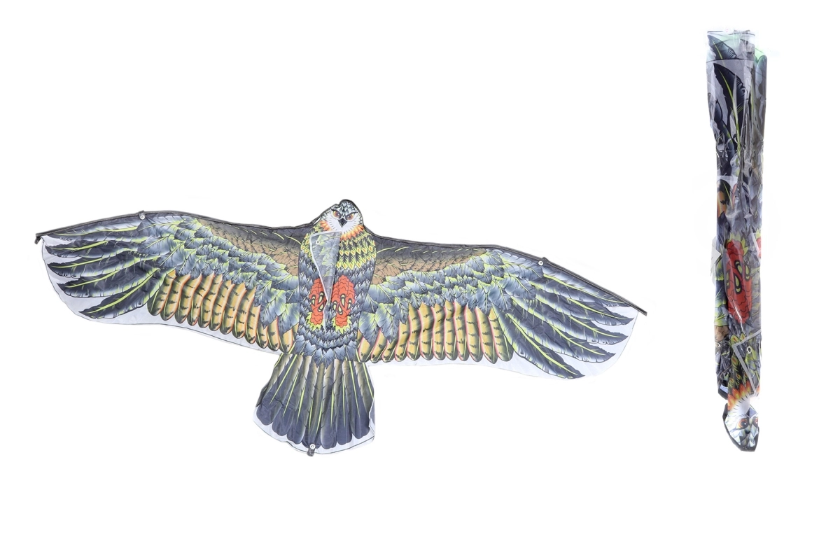 Élvezze a szeles napokat a valósághű, sas alakú repülő sárkánnyal. Könnyű és tartós nylonból, egyszerű összeszerelés, valamint kényelmes műanyag fogantyú zsinórral a stabil repüléshez. Remek szórakozás 3 éves kortól.