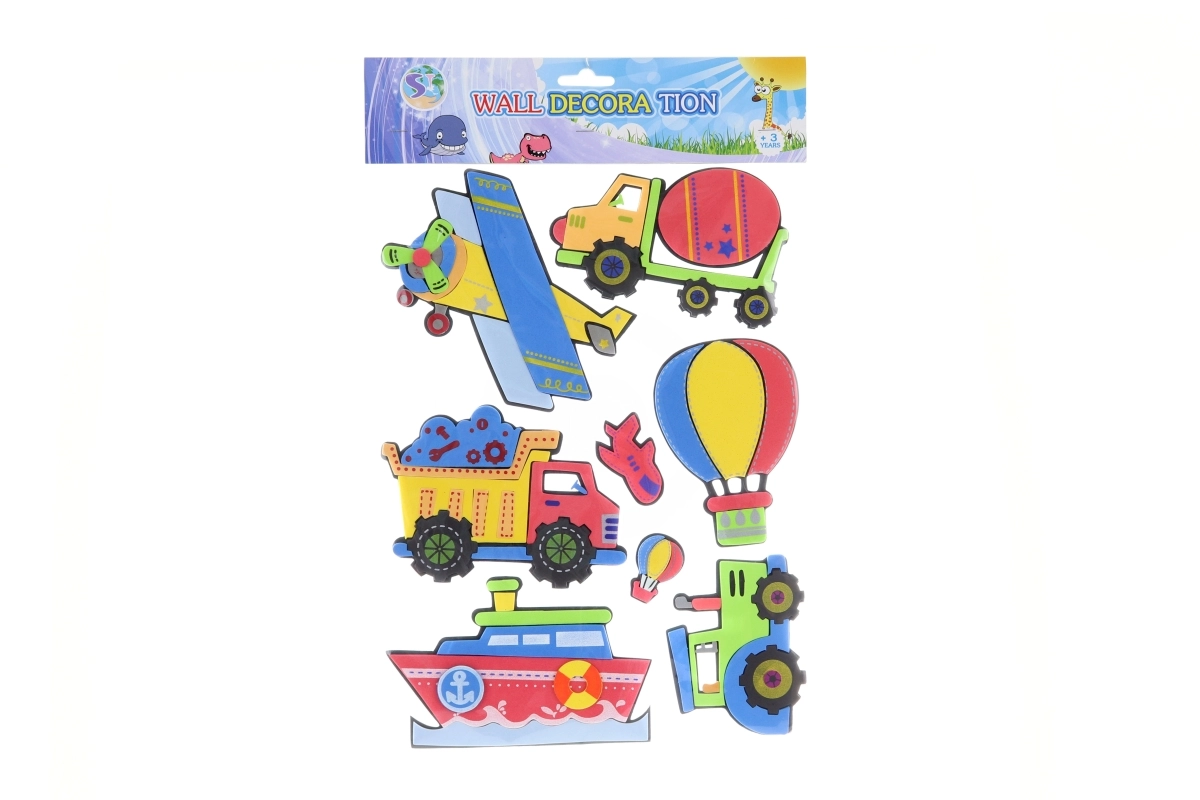 Ez a fali habmatrica-készlet repülő, teherautó, ballon, hajó, traktor és más járművek motívumaival feldob bármely gyerekszobát. Az élénk színeknek és a hab 3D hatásának köszönhetően játékos környezetet teremt, amely támogatja a fantáziát és a tanulást a közlekedési eszközökről.