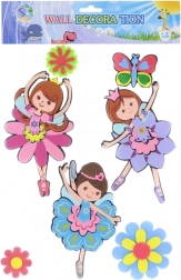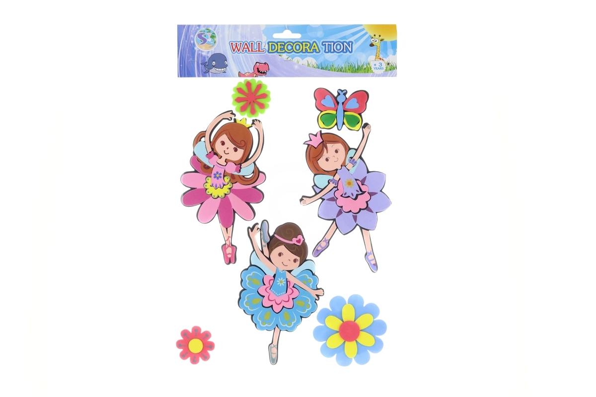 Ez a varázslatos fali dekorációs készlet finomságot és színeket visz az enteriőrbe. Három elegáns tündér, színes virágok és egy játékos pillangó harmonikus kompozíciót alkotnak, amely remekül mutat kiságy fölött, íróasztalnál vagy a játszósarokban. Az elemek könnyű, kellemes tapintású habból készülnek, és az öntapadós hátoldalnak köszönhetően a kezdő dekorálók is könnyedén felragaszthatják.