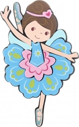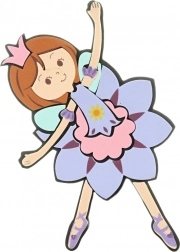 Három gyönyörű tündér, virágok és egy pillangó élénk pasztellszínekben ragyogtatják fel a teret, és ösztönzik a gyerekek képzeletét.