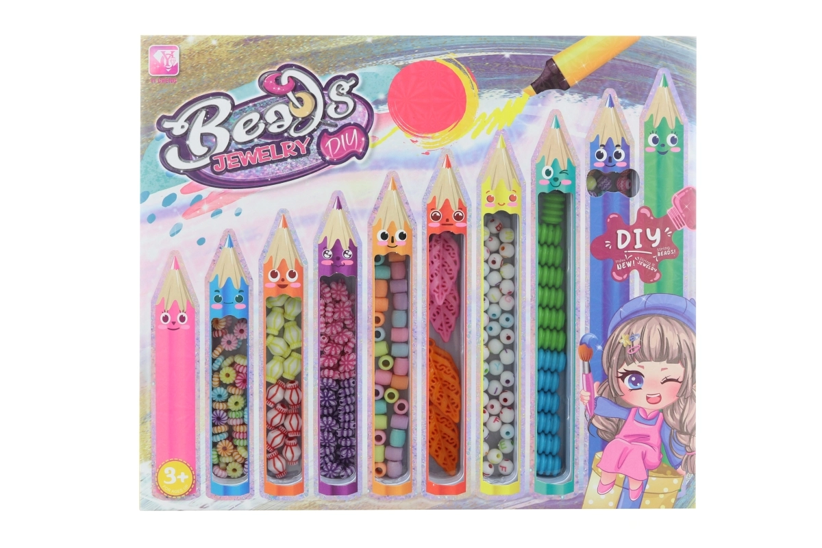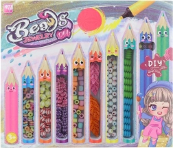 Támogassa a gyerekek fantáziáját és türelmét ezzel a színes gyöngykészlettel, egyedi, ceruza alakú csomagolásban. A változatos formáknak és méreteknek köszönhetően a gyerekek könnyedén készítenek nyakláncokat, karkötőket vagy medálokat, miközben fejlődik finommotorikájuk és kreativitásuk.