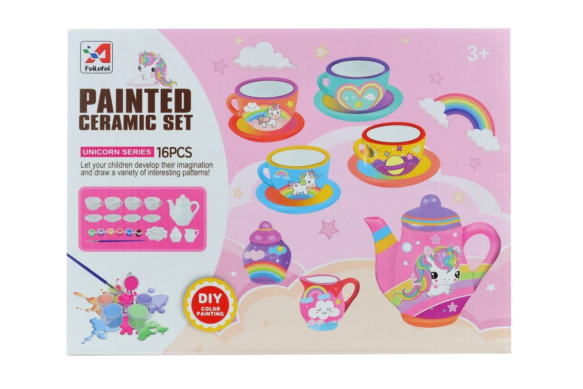 Adj örömet a gyerekeknek az alkotás és a játék együttes élményével. A festhető teáskészlet unikornissal ideális a kis művészeknek, akik szeretnék saját kerámia készletüket díszíteni, majd azzal játszani. A teljes tartozékkészletnek köszönhetően a gyerekek azonnal elkezdhetnek festeni és egyedi mintákat alkotni.