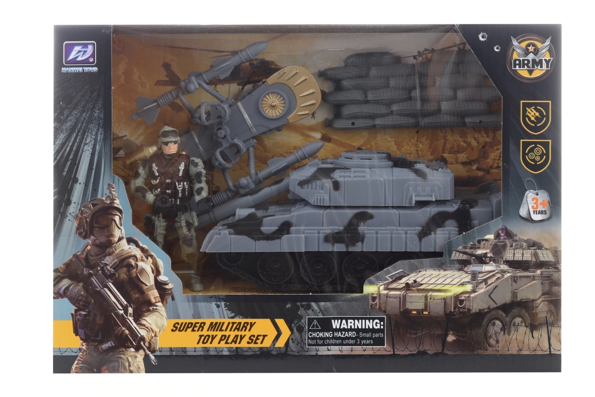 Fedezze fel az akciódús szórakozást ezzel a katonai készlettel tankkal a kis kalandorok számára. A csomag tartalma egy katonafigura, egy műanyag tank és kisebb kiegészítők a kreatív játékhoz. 3 éves kortól ajánlott, praktikus dobozban csomagolva.
