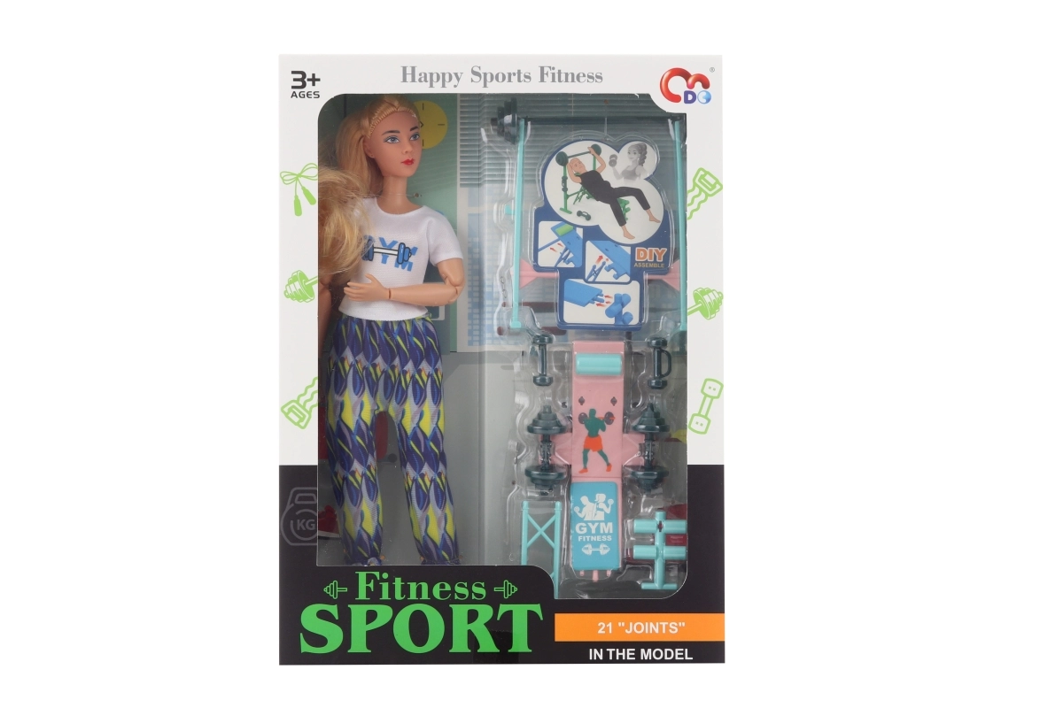 Fedezd fel a szórakozást és a mozgást ezzel az ízületes babával és a gazdag fitnesz kiegészítő készlettel. A baba mozgatható fejet, karokat és lábakat kapott, így számos valósághű pózt tud felvenni edzés közben. A szett része egy edzőpad és 5 különböző méretű kézisúlyzó. Ideális kreatív játék 3 éves kortól.