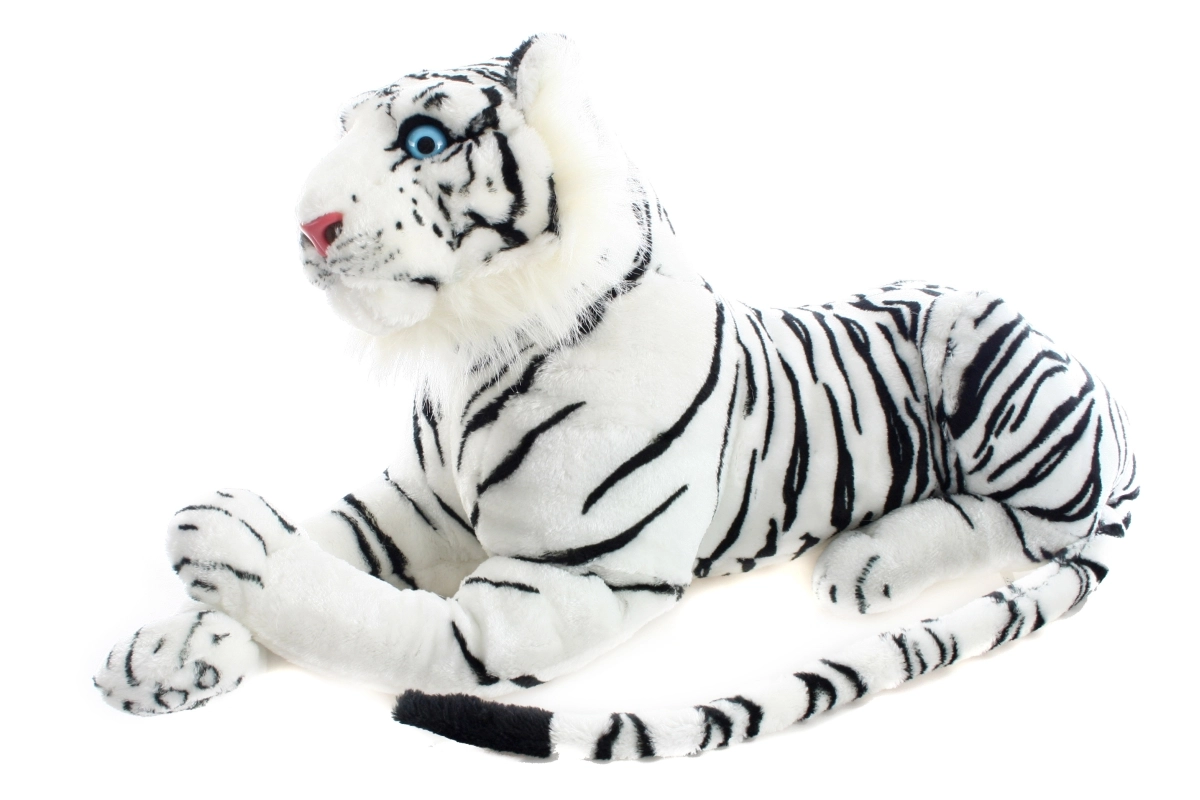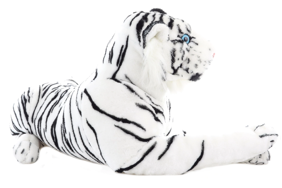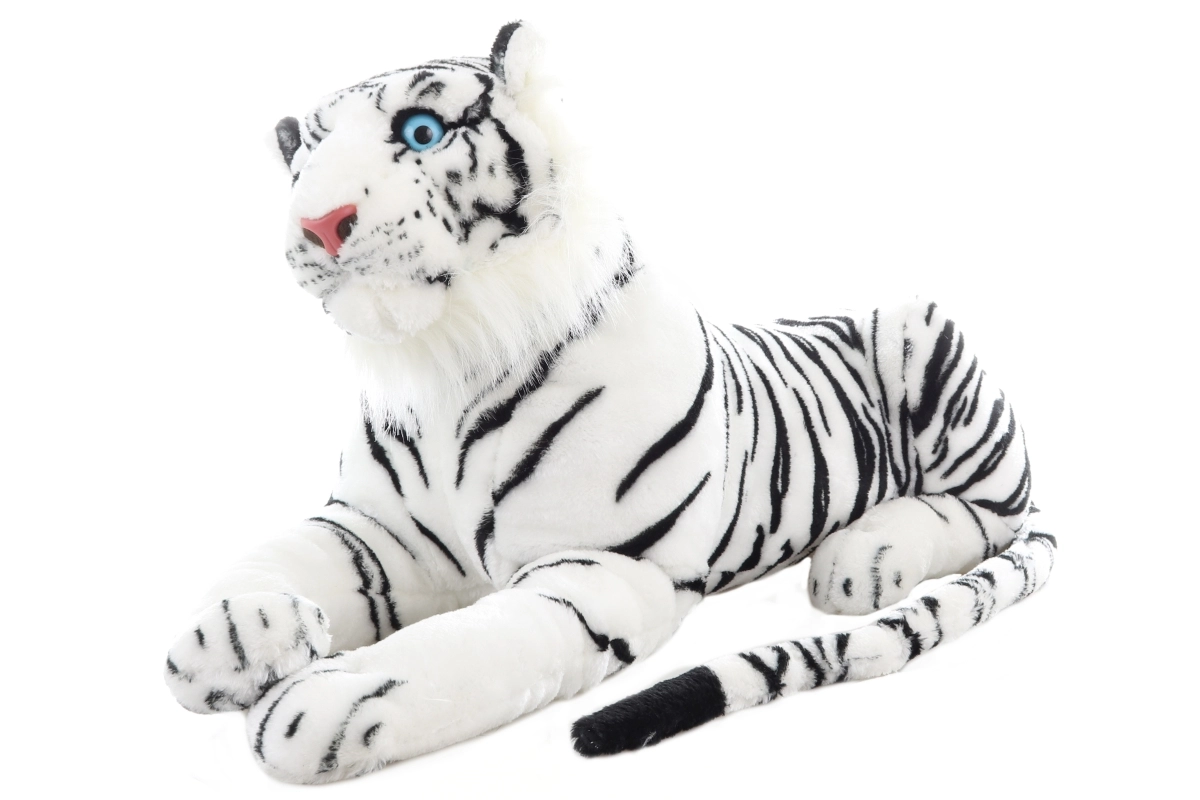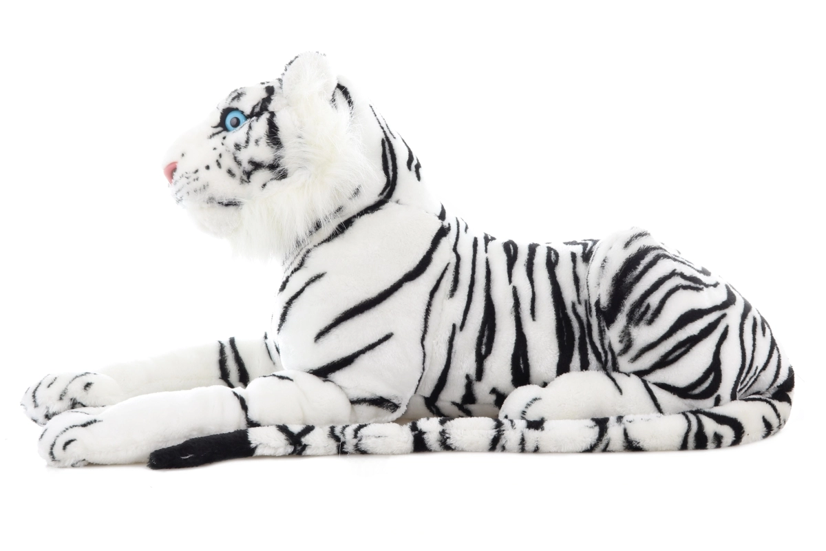 Aranyos és élethűen kidolgozott plüss fehér tigris 70 cm hosszban, amely a kicsik és nagyok állatkedvelőinek egyaránt örömet szerez. Extra puha anyag, feltűnő kék szemek és részletes csíkozás teszi ideálissá ölelgetéshez, dekorációnak és kreatív játékhoz. Alkalmas már 0+ kortól.