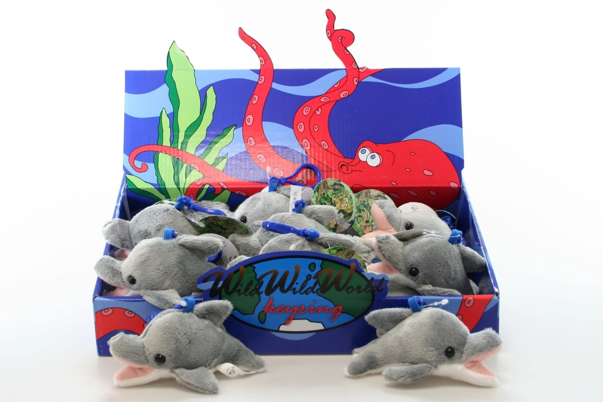 Cuki plüss delfin kulcstartóként, amely a kicsiket és a nagyokat egyaránt megörvendezteti. Pihepuha, könnyű, és ideális kulcsokra, hátizsákra vagy tolltartóra. Méret kb. 13 × 7 cm, ajánlott 3 éves kortól. Szuper ötlet kis ajándéknak vagy stílusos kiegészítőnek.